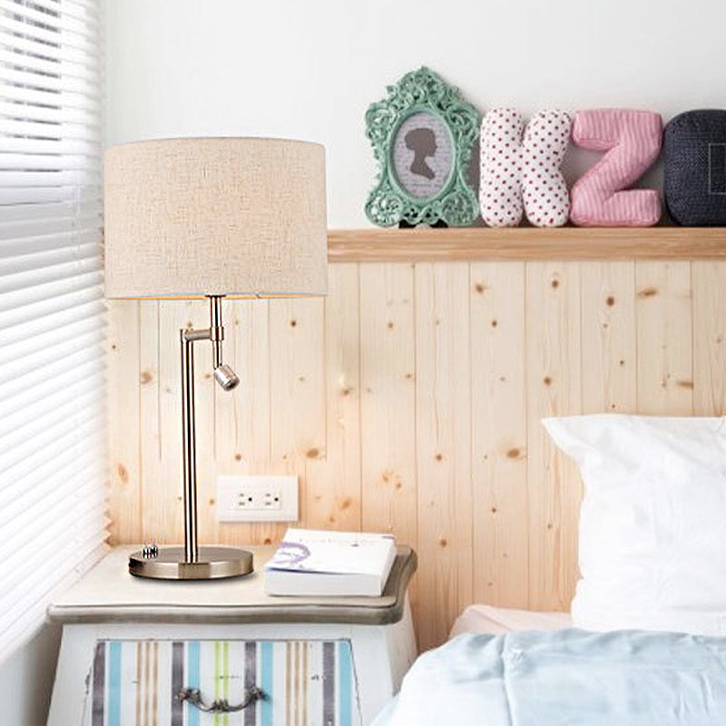 Traditional Drum Study Light: 1-Light Fabric Task Lighting in Nickel for Bedroom with Base