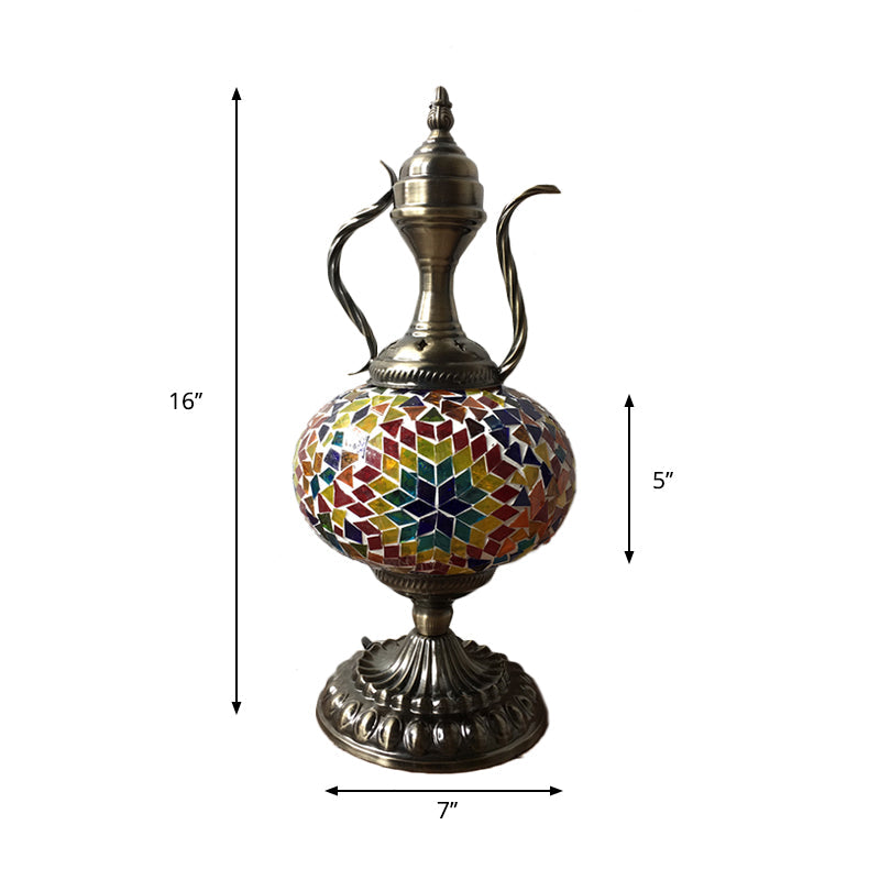 Antique Small Desk Lamp - White/Red/Orange Glass Sphere 1 Bulb Task Lighting With Metal Base For