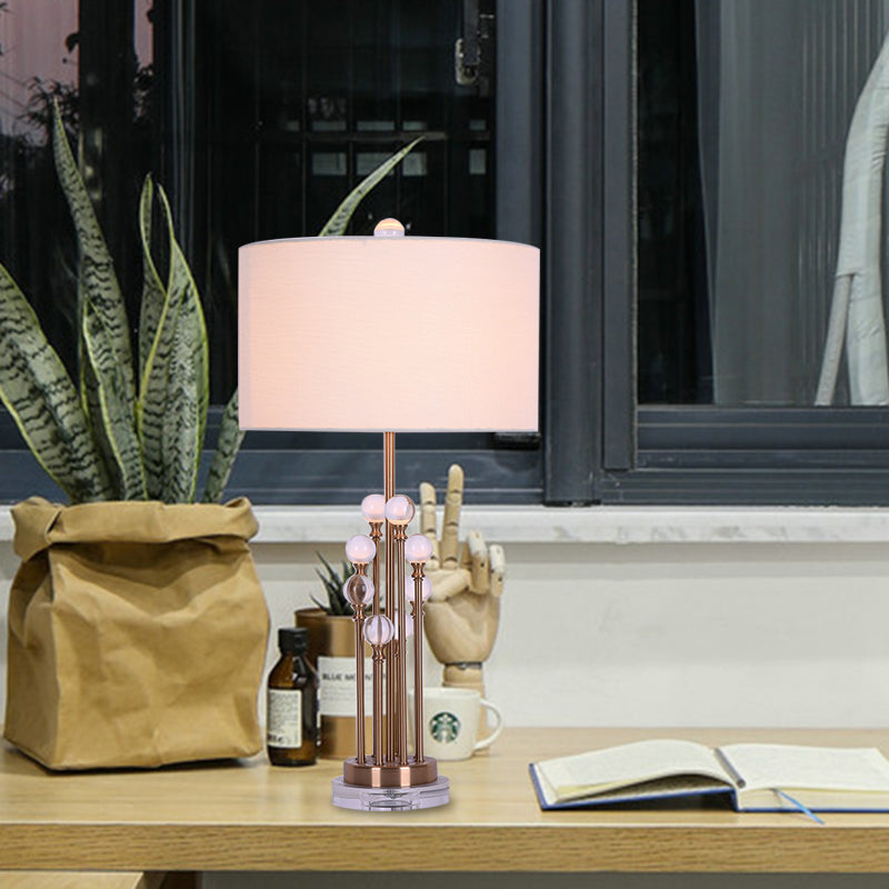 White Round Fabric Night Lamp With Crystal Accent - Cozy Bedroom Nightstand Light