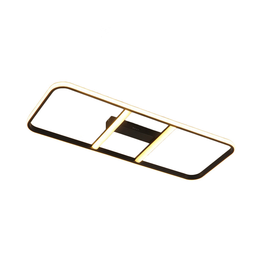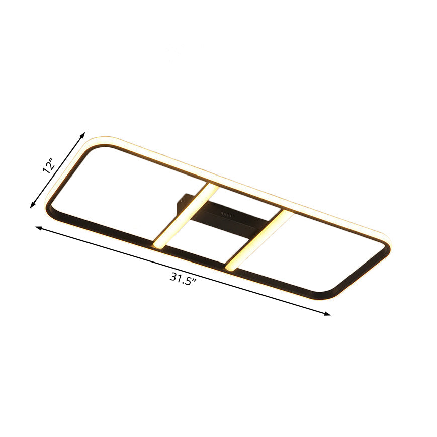 This semi-flush LED light features a metal shade with a black finish. It has a rectangular shape and is 12"/23.5" wide. The light is white/warm in color and has a voltage of 220V-240V/110V-120V. The light type is LED and the bulb base is SMD. The maximum bulb wattage is 40 to 59 watts/60 to 99 watts. The fixture width is 12"/23.5" and the length is 31.5". The color temperature is warm white. The product includes the bulb and has a modern style.