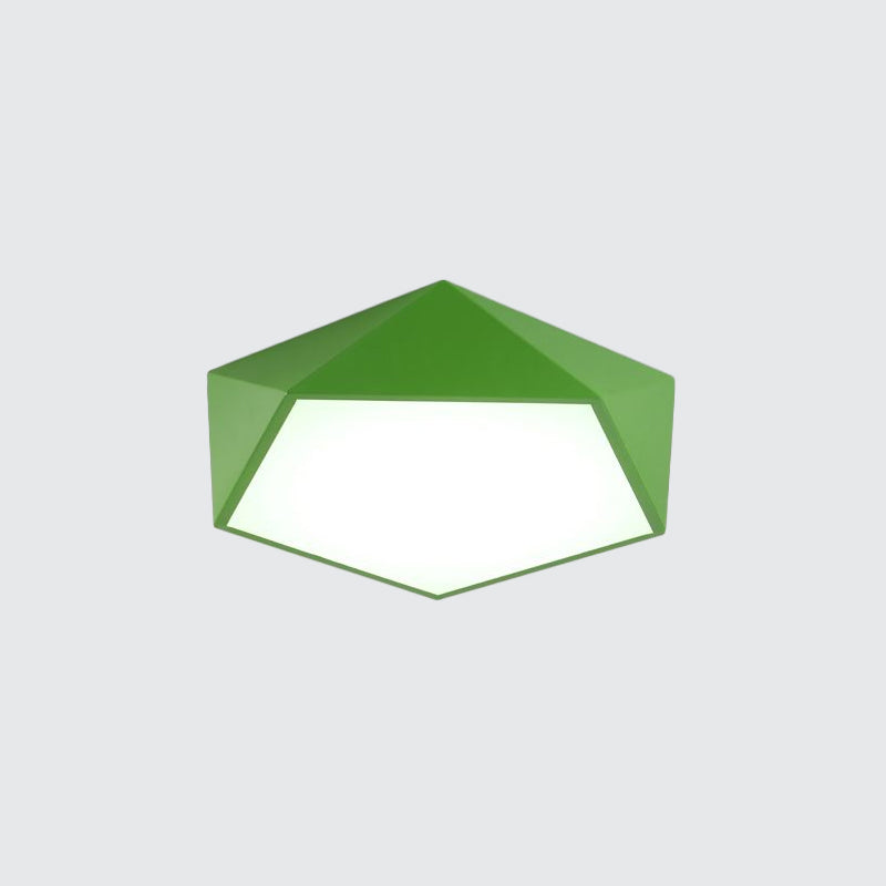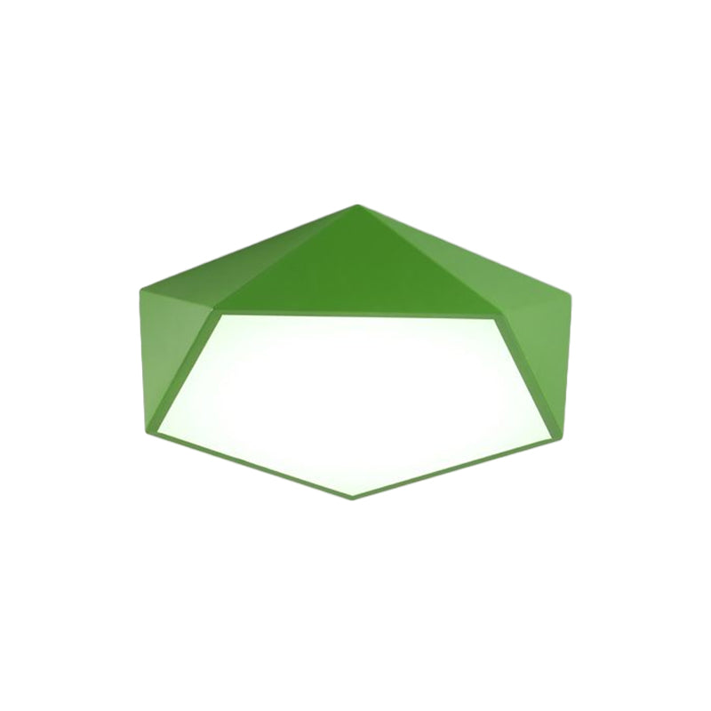 Childrens Pentagon Flushmount Led Ceiling Light Fixture In Red/Yellow/Blue Acrylic Green