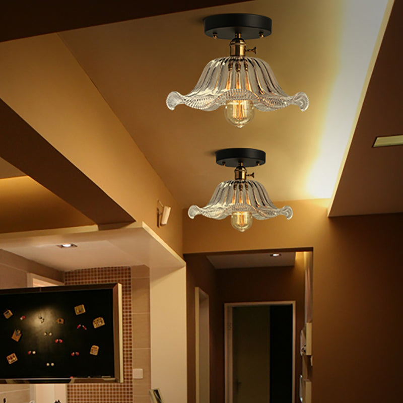 Rustic Ribbed Glass Scalloped Semi Flush Light Red/Blue/Clear 8/10/12 Wide Clear / 10