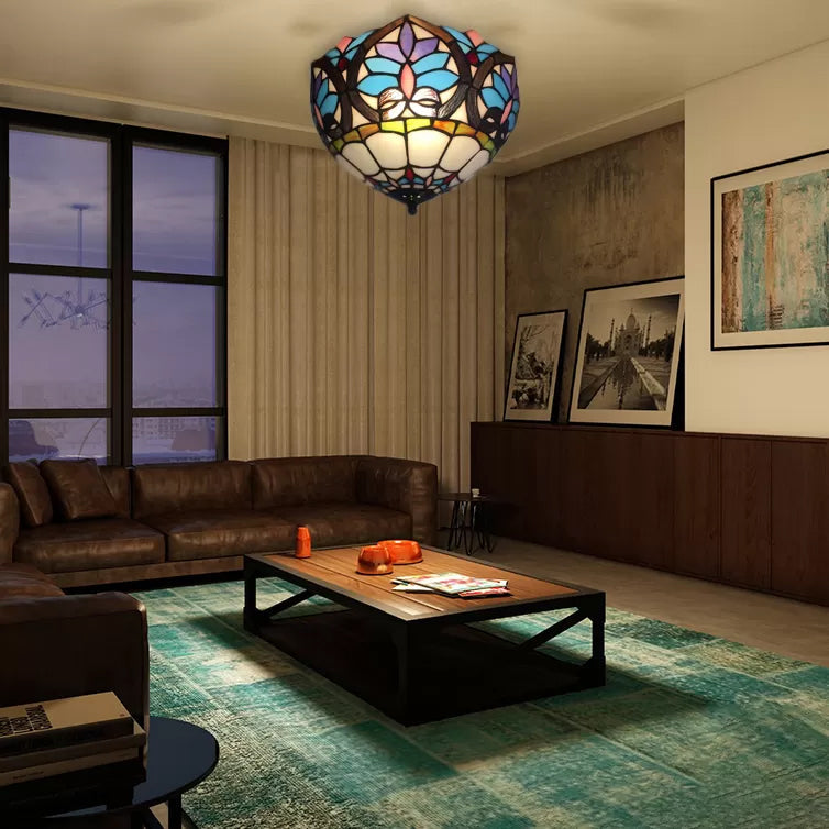 This gorgeous Tiffany-style ceiling light is the perfect addition to any room and creates a touch of sophistication and beauty. This light features two lights, each with 16" 12" width and 8.5" 8" height. The fixture is crafted out of durable glass that is stained to create a beautiful blue hue to bring out the intricate details and subtle colors of the design. The voltage of the fixture is 110V-120V 220V-240V and the included bulb is an E26/E27 type, making it compatible with LED, Incandescent, and Fluorescent lights. The fixture is designed to be a flush mount, which is great for smaller spaces, as there is minimal space between the ceiling and the fixture. The Victorian-style design of the fixture is perfect for any living room or bedroom and is sure to be a conversation starter. This ceiling light will bring style, elegance, and beauty to any room and will be a standout piece for years to come.
