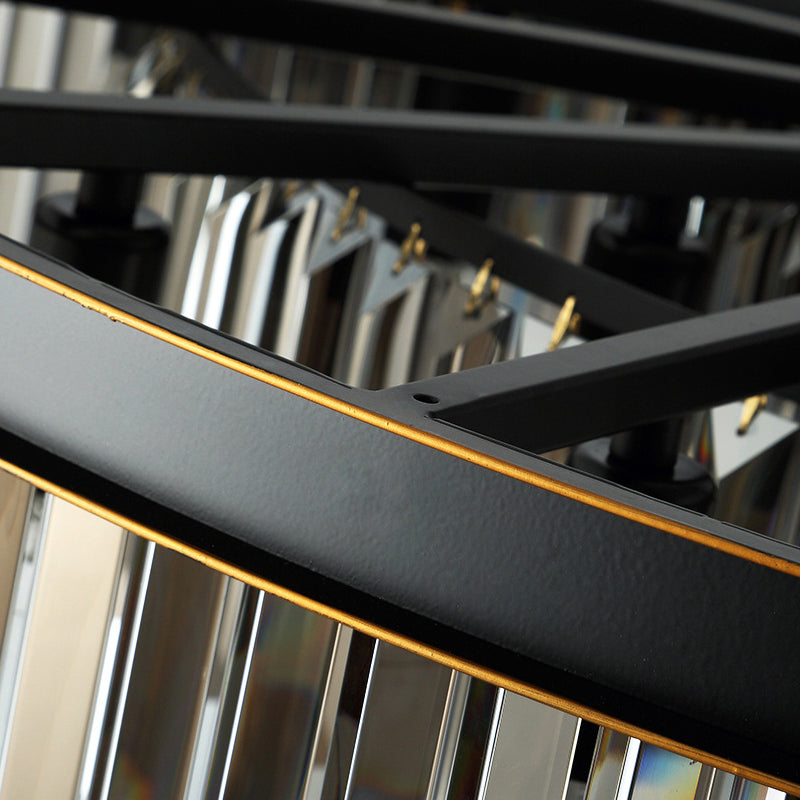 Modern Black Drum Chandelier with Crystal Shaded Pendant Light - 6/12 Lights for Living Room