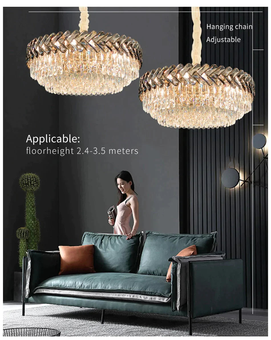 Clara - Round/Rectangle Crystal Chandelier Dia40 X H30Cm(Round) / Not Dimmable Warm White