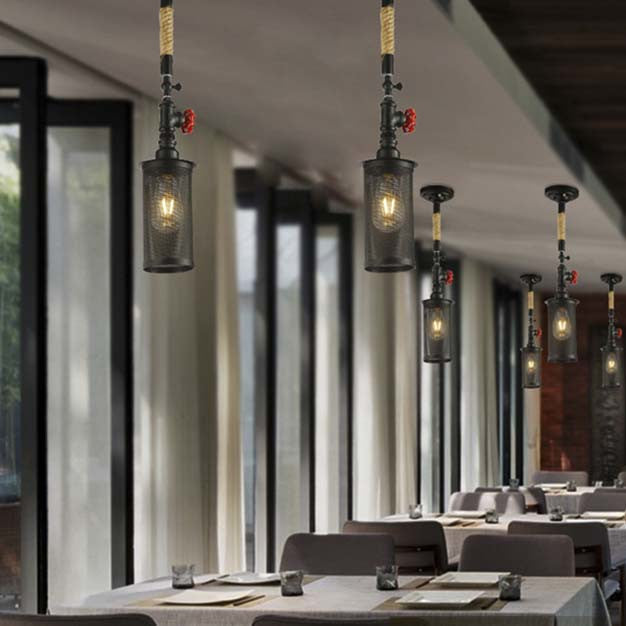 This product is an industrial-style ceiling light with a mesh screen design. It is made of metal and features a rotatable shade with a cylinder design. The light is compatible with LED, incandescent, and fluorescent bulbs. It has a voltage of 220V-240V 110V-120V and a bulb base of E26/E27.