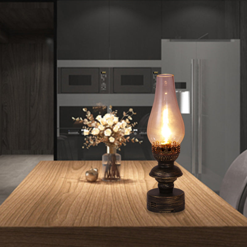 Vintage Brass Desk Lamp with Clear Glass Vase Shade and Metal Base