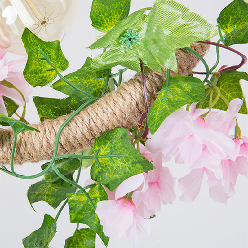 Black Metal 4-Light Linear Island Lamp With Hanging Artificial Plant - Lodge Style / Flower
