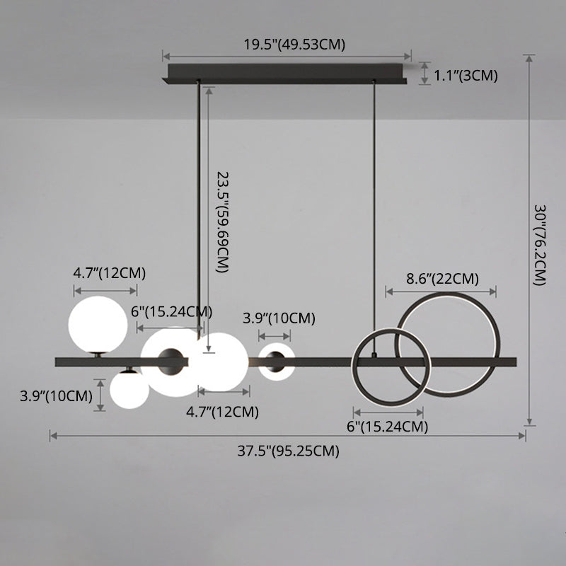 Modern 5-Light Black Metal Pendant Lighting with Spherical Glass for Dining Table