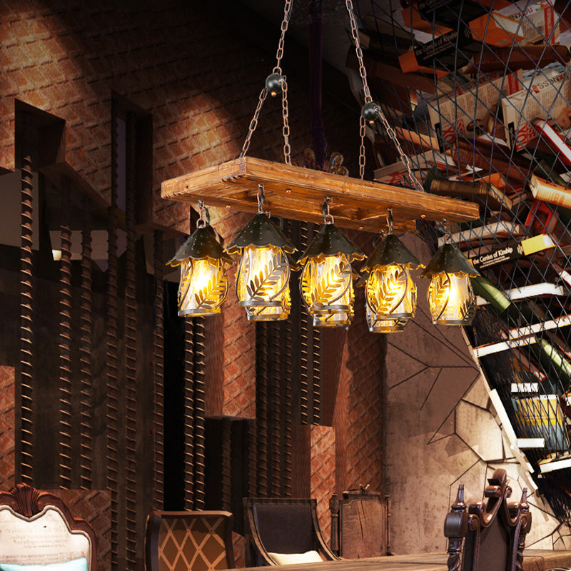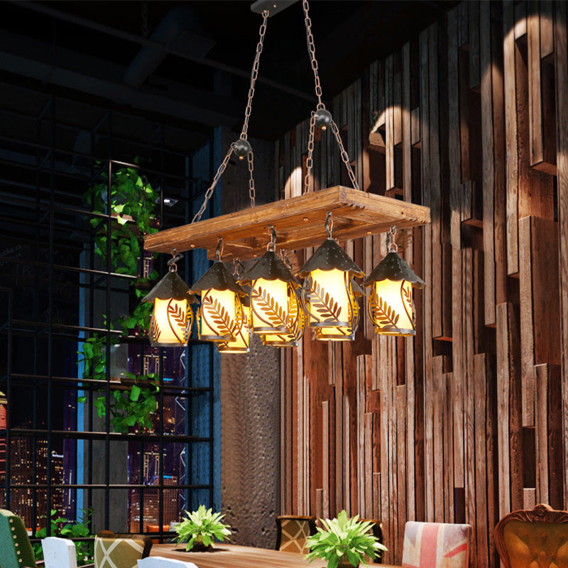 Vintage 8-Light Island Pendant Chandelier In Black: Rectangle White Fabric & Clear Glass