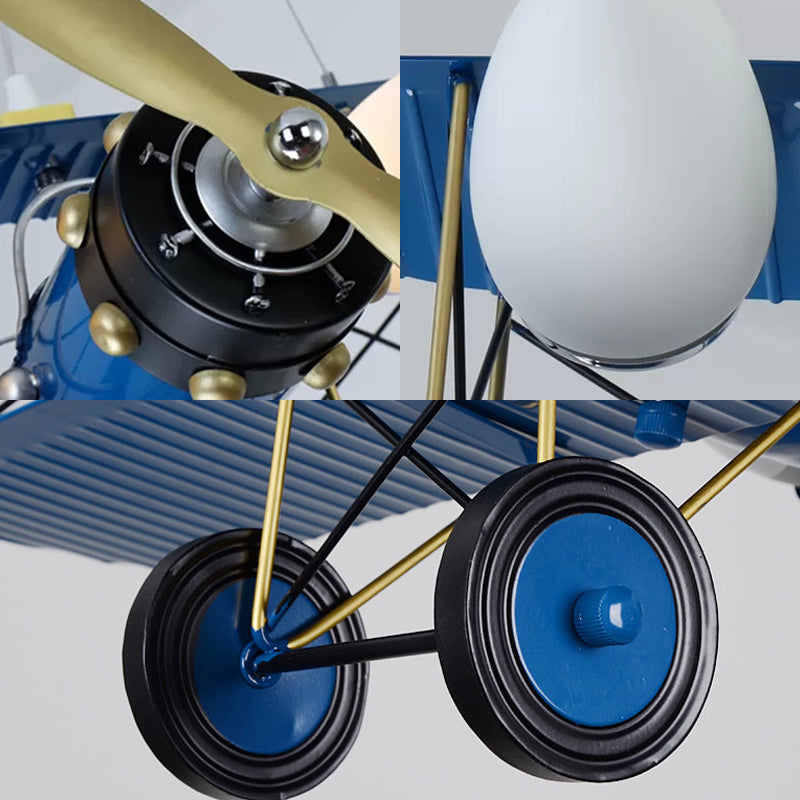 Modern Biplane Design Chandeliers for Boys' Bedrooms - 4 Light Glass Shade Ceiling Fixture