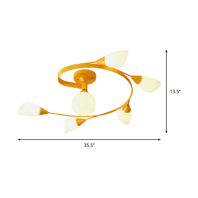 Curly Semi Flush Mount Ceiling Lamp with Nordic Iron & White Glass Shade - 4/6 Head Options in Grey, Pink, or Yellow