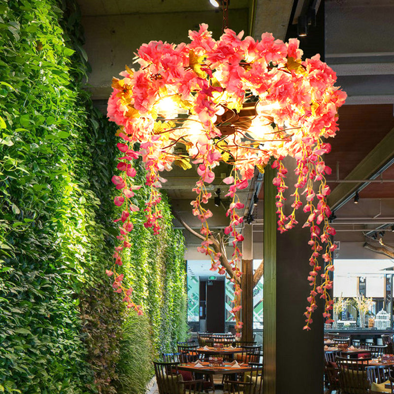 This Iron Round Cage Chandelier Light Vintage 3/5-Light Restaurant Suspension Lamp in Black with cherry blossom is a perfect choice for those looking for a stunning and elegant light fixture. The metal frame is black, giving the chandelier a stylish and modern look, perfect for contemporary interiors. The size of 20-24 inches and 15-19 inches makes this perfect for any space. With a width of 21.5 inches and 19 inches and a height of 49 inches, it provides a unique lighting experience.