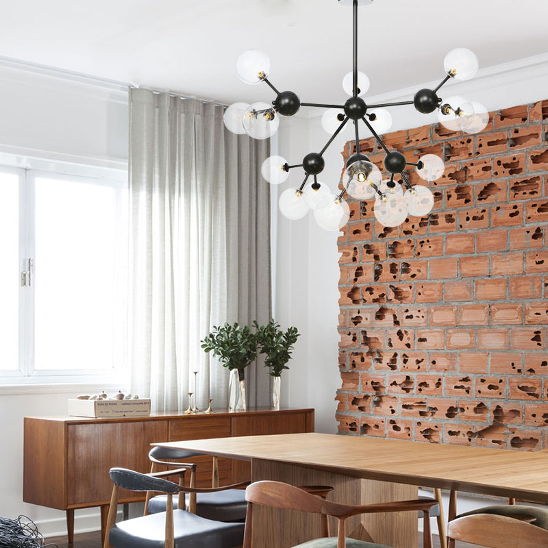 Industrial Orb Chandelier Lamp with Sputnik Design, Amber/Clear/Smoke Gray Glass, 3/9/12 Lights, 13"/27.5"/34" Wide