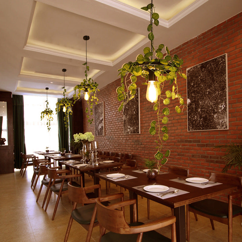 Retro Iron Wagon Wheel Chandelier - Black 1/3/6 Light Hanging Pendant with Decorative Plant