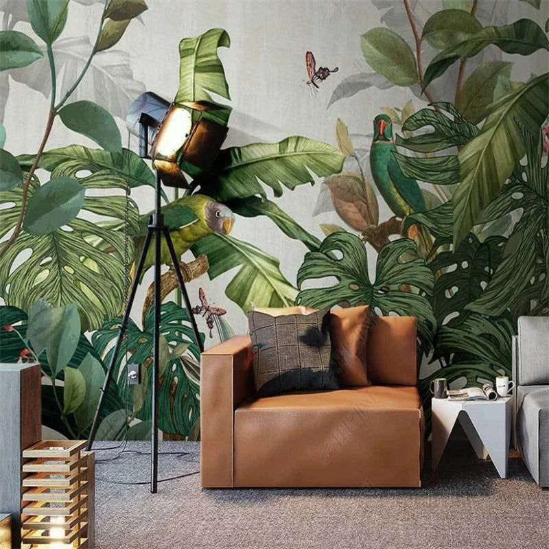 Nordic Green Wall Paper Tropical Rainforests 3d Mural Southeast Asian Jungle Plants Wallpapers for Living Room