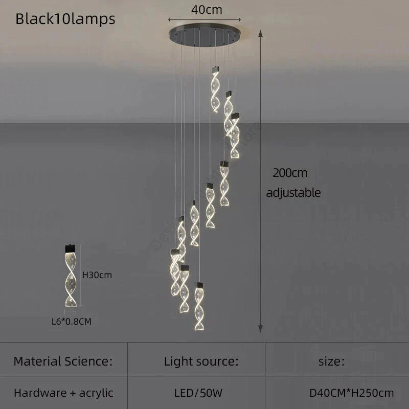 Alura - Designer Spiral Chandelier Black 10 Lamps / White Light