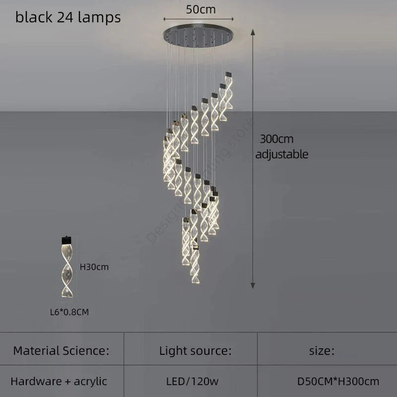 Alura - Designer Spiral Chandelier B Black 24 Lamps / White Light
