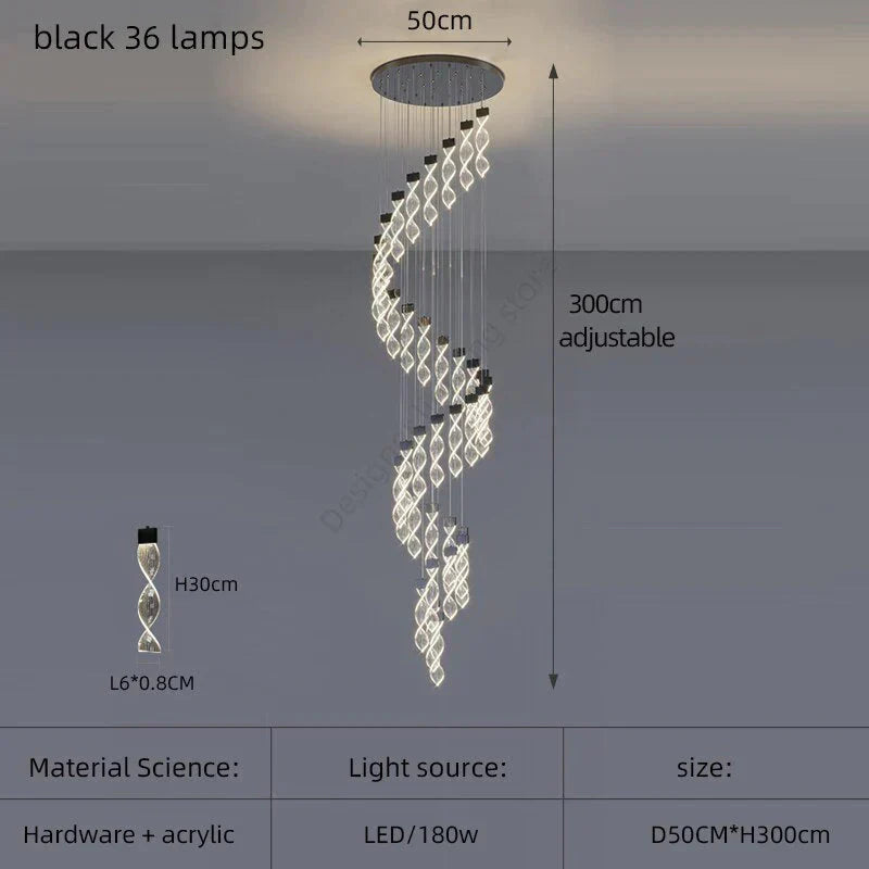 Alura - Designer Spiral Chandelier Black 36 Lamps / White Light