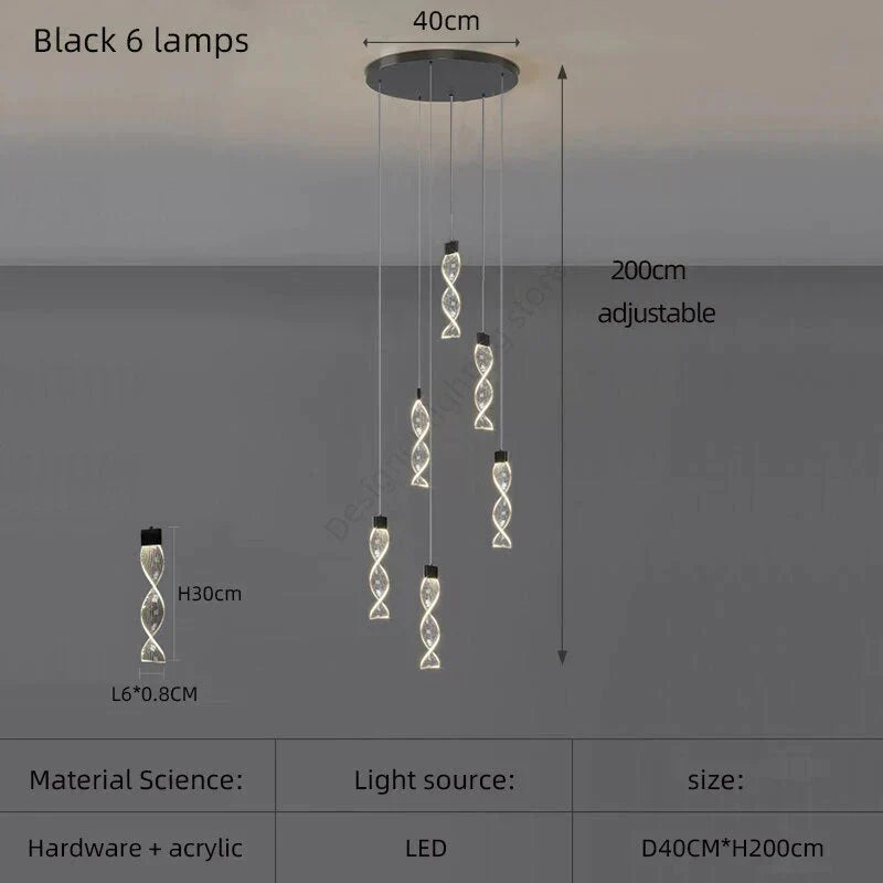 Alura - Designer Spiral Chandelier Black 6 Lamps / White Light