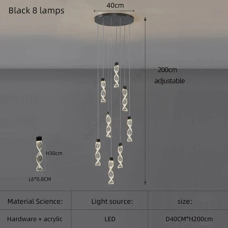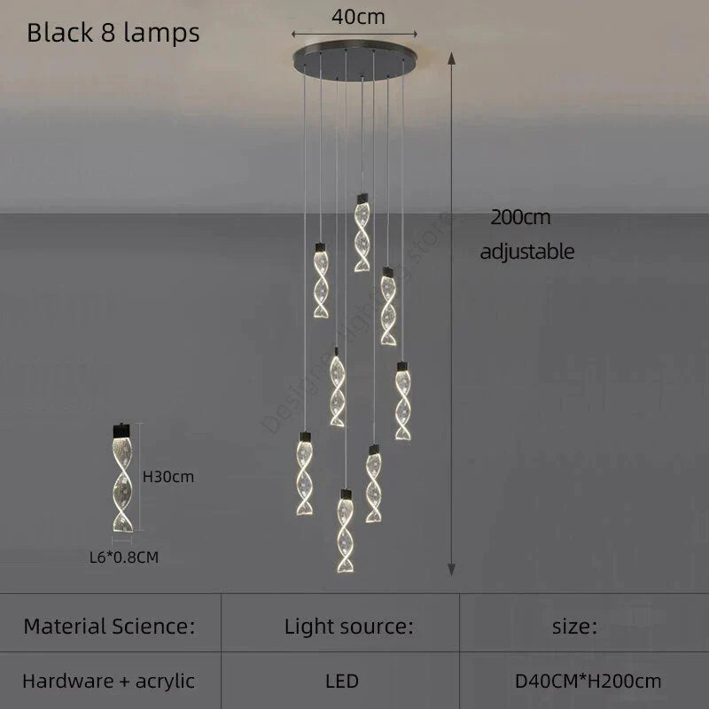 Alura - Designer Spiral Chandelier Black 8 Lamps / White Light
