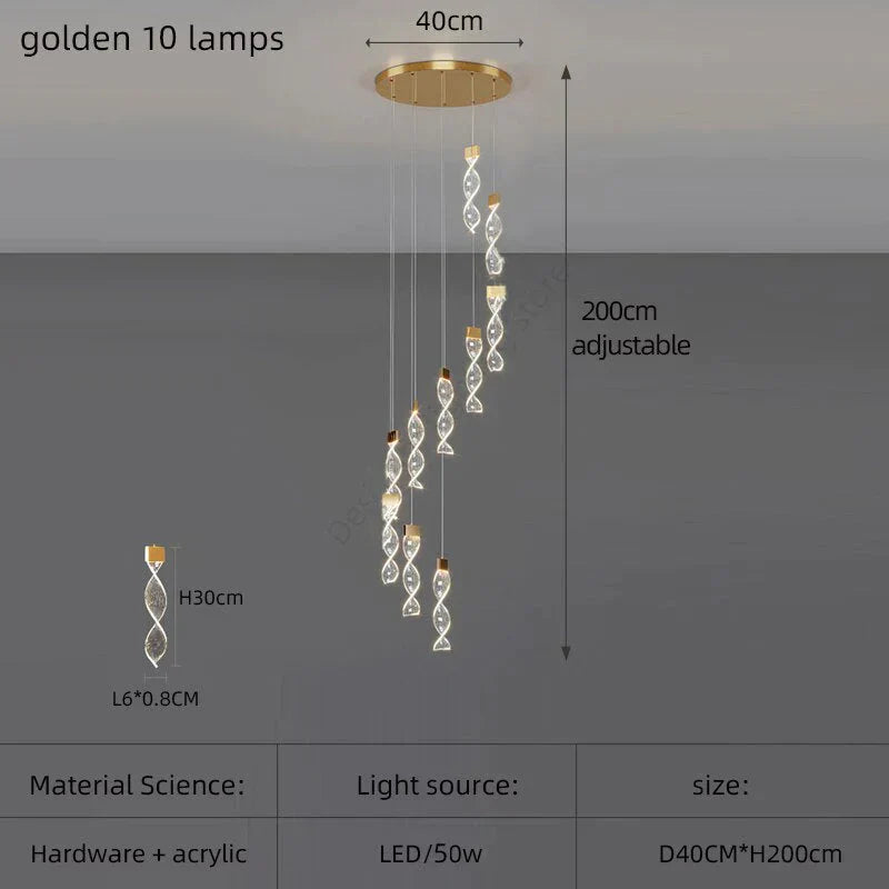 Alura - Designer Spiral Chandelier Golden 10 Lamps / White Light