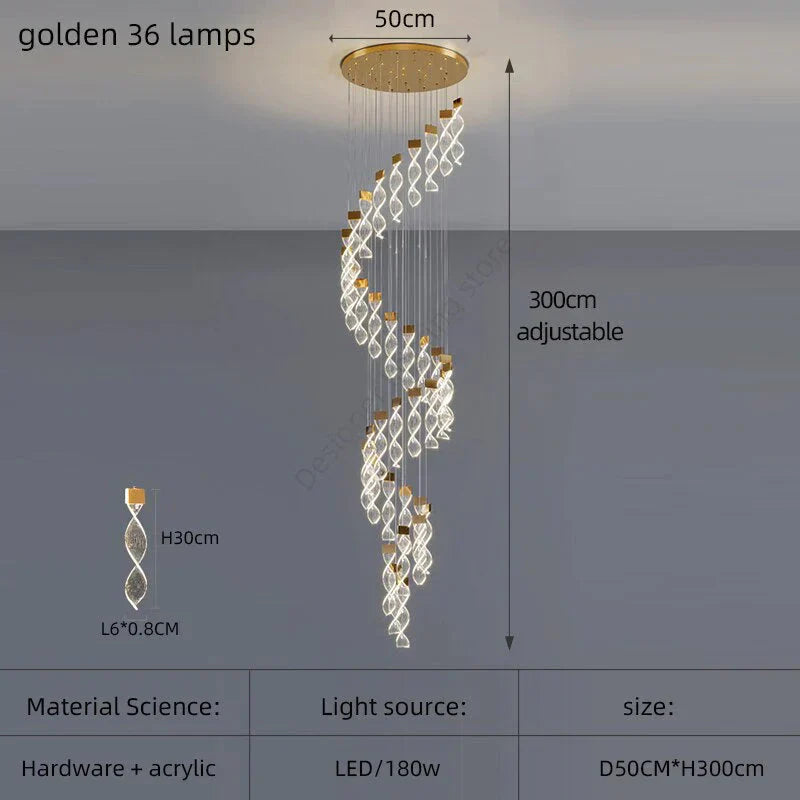 Alura - Designer Spiral Chandelier Golden 36 Lamps / White Light