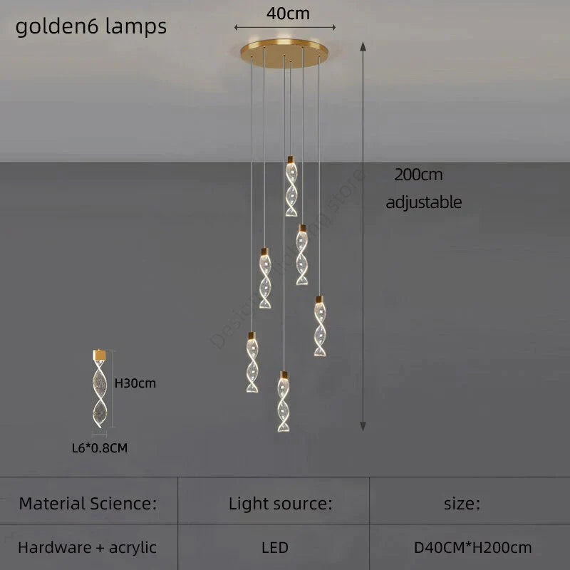 Alura - Designer Spiral Chandelier Golden 6 Lamps / White Light