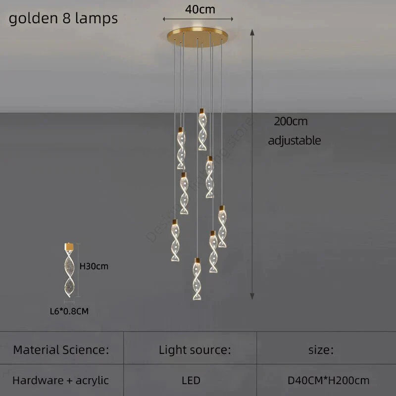 Alura - Designer Spiral Chandelier Golden 8 Lamps / White Light