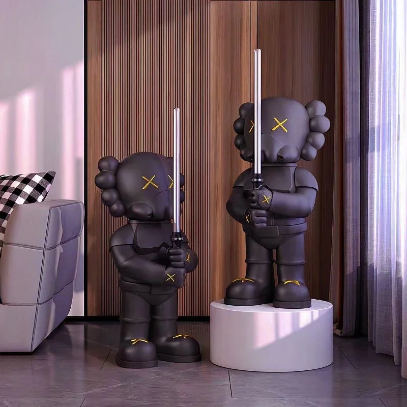 Add a trendy and stylish touch to your living space with these fashionable Lightsaber Bear Sculptures. Standing tall and exuding a high-end vibe, these floor-standing dolls are sure to catch the eye of any visitor.