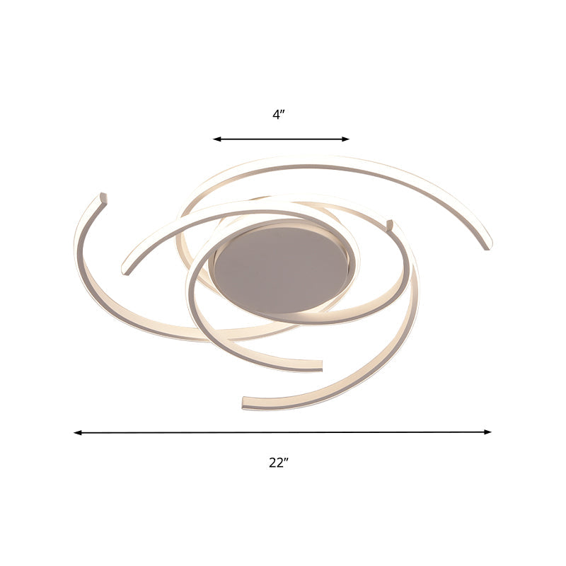 Contemporary 22/29.5 Wide Twisted Flush Mount Light - Led Acrylic Ceiling Lamp White/Black White /
