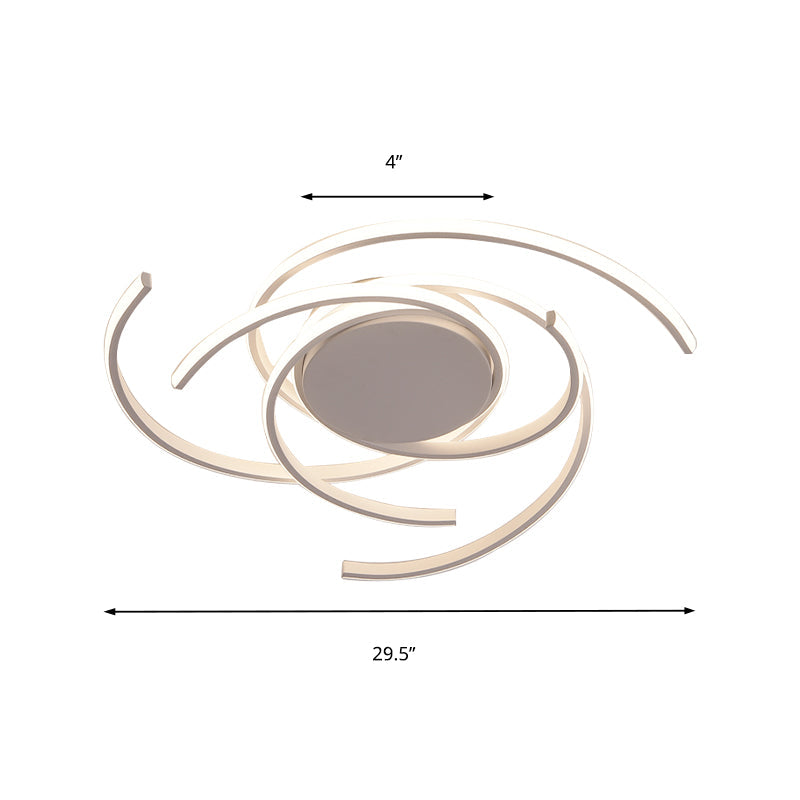 Contemporary 22"/29.5" Wide Twisted Flush Mount Light - LED Acrylic Ceiling Lamp - White/Black