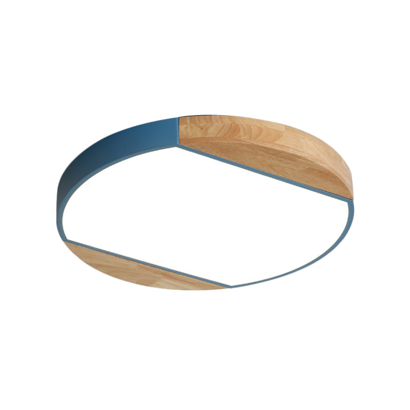This product is a blue/green/white/yellow ceiling light in a circular LED design. It is made from acrylic and wood, and has a voltage of 110V-120V or 220V-240V. The light is suitable for a baby's bedroom or a kindergarten, and emits a warm white light.
