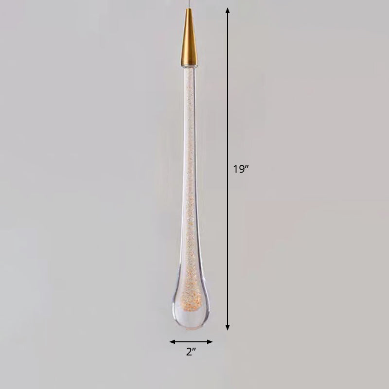 Gold LED Pendant Light: Clear Crystal Glass Waterdrop Suspension Lamp for Dining Room Décor