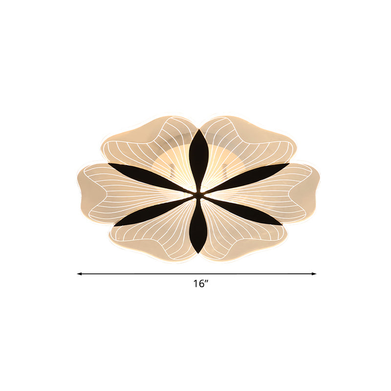 Minimalist Black Floral Flush Mount Led Ceiling Light For Bedroom - White/Warm Option / White