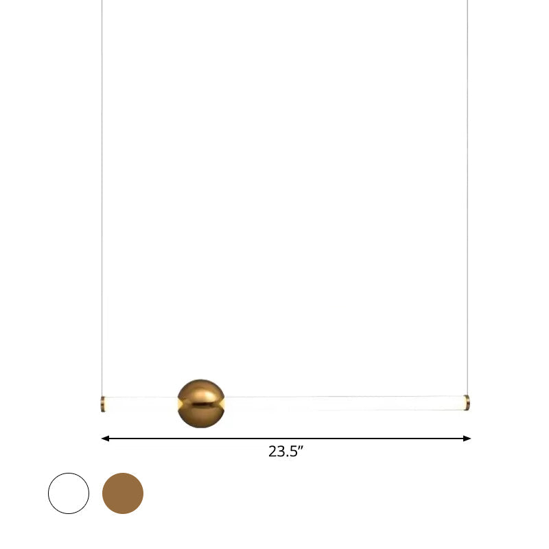 Introducing the Biham 1-Head Bedside Drop Pendant, a mesmerizing blend of postmodern gold and clear hanging light. This exquisite lighting fixture is the perfect addition to elevate any space with its sleek and contemporary design. Crafted with precision, the pendant features a single head that emits a warm and inviting glow, creating a cozy ambiance in your bedroom or living room. The combination of gold and clear accents adds a touch of sophistication, making it an ideal choice for modern and minimalist interiors. With its adjustable height, you can easily customize the drop length to suit your preference. Enhance your decor and illuminate your surroundings with the Biham 1-Head Bedside Drop Pendant, a statement piece that effortlessly infuses elegance into any setting.
