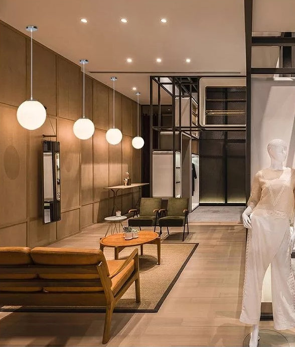 Modern 1 Light Glass Ball Pendant For Clothing Store Ceiling Simple & White
