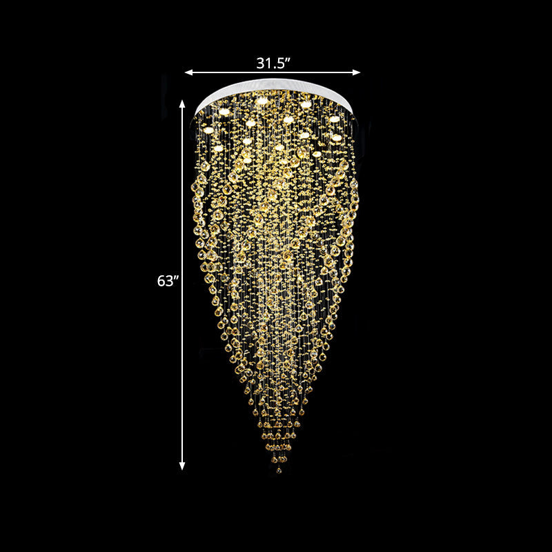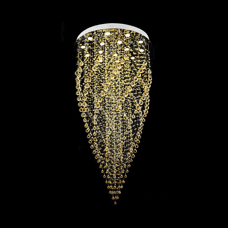 This is a 15-Head Crystal Suspension Lamp in the Contemporary Silver Swirl Stair LED Multiple Hanging Light style. This product is made with Crystal and is voltage 110V-120V 220V-240V. The bulb base for this light is GU10 and the light type is LED.