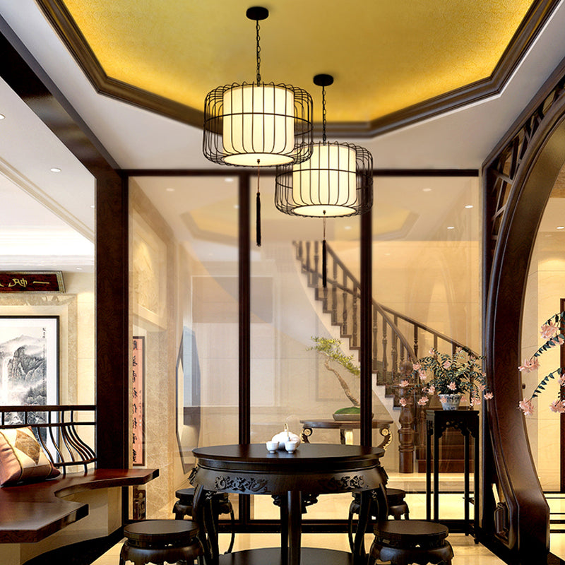 16"/19.5" Wide Black Fabric Hanging Pendant Lantern - Traditional Stylish Down Lighting