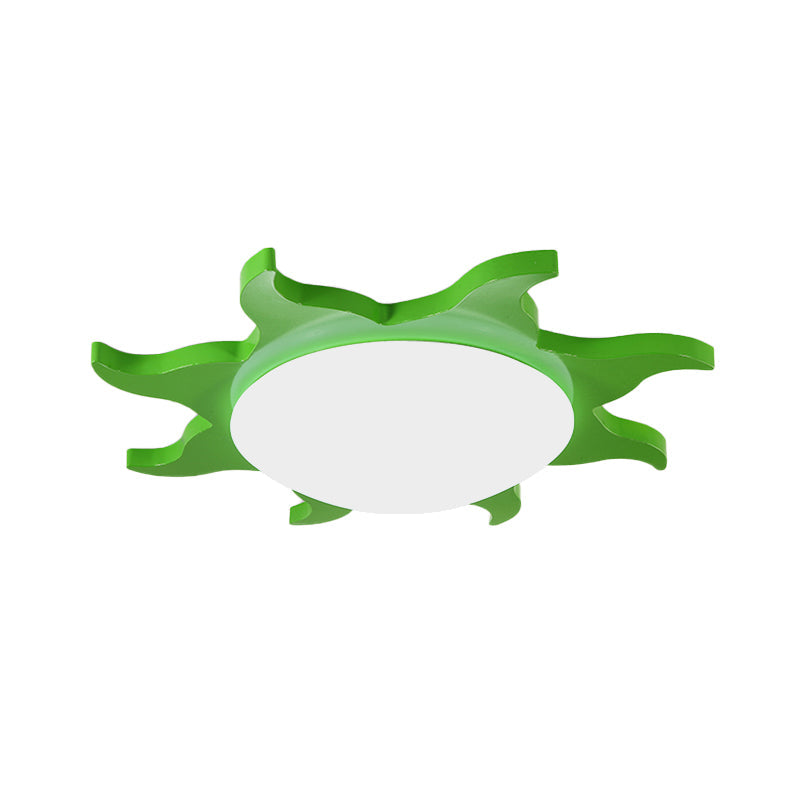 Sun-Shaped Cartoon Wood Acrylic Flush Ceiling Light For Kindergarten Green / 16 White