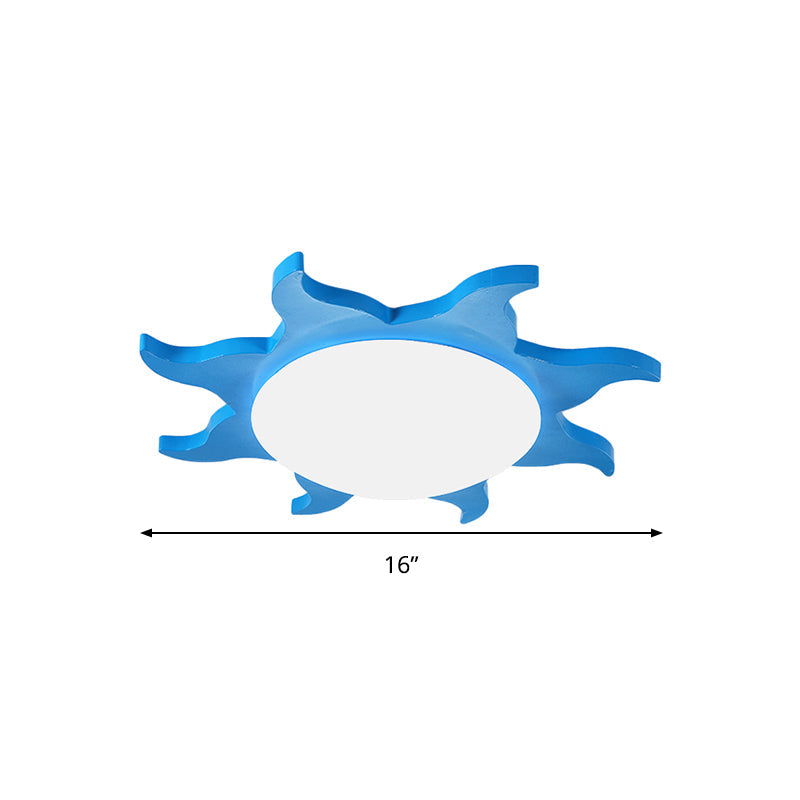 Sun-Shaped Cartoon Wood Acrylic Flush Ceiling Light For Kindergarten Blue / 16 Warm