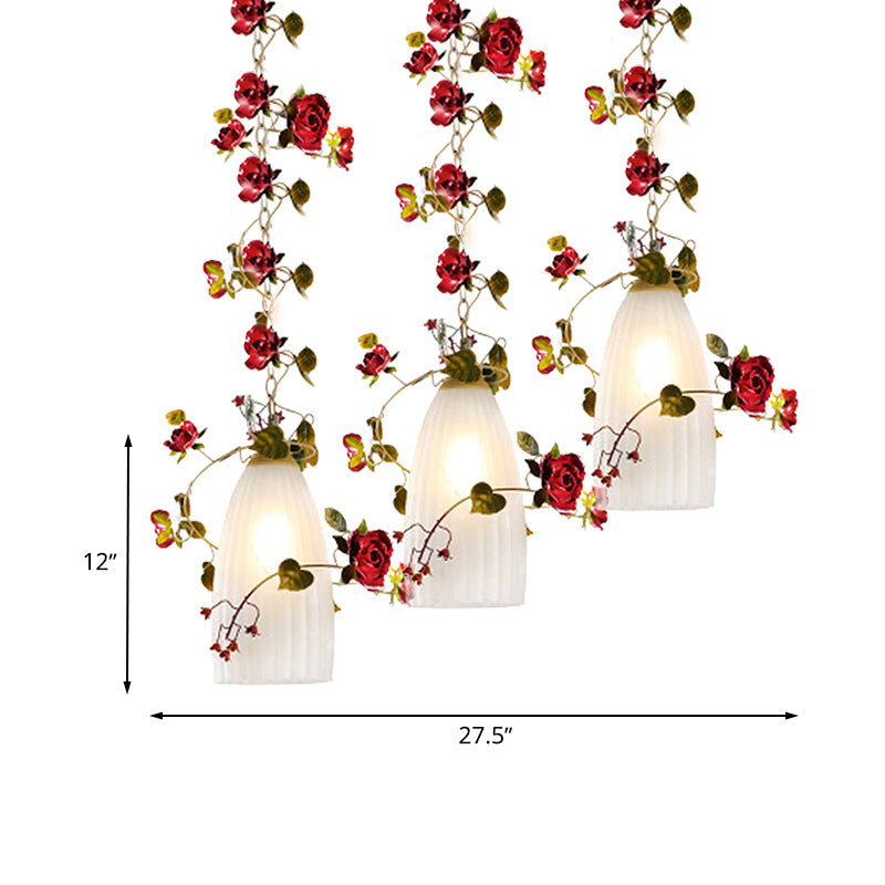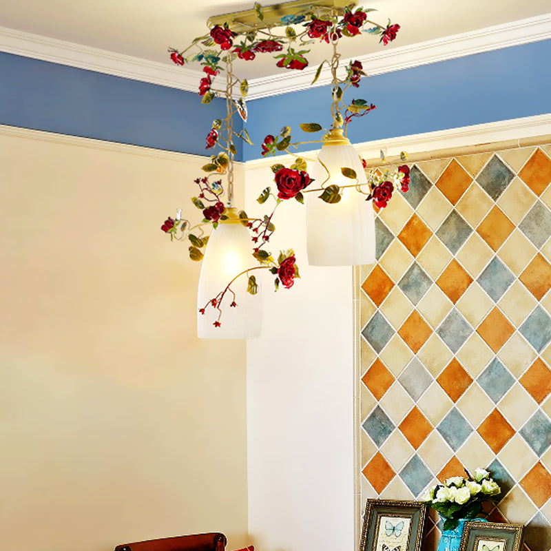 Red Cluster Pendant Ceiling Lamp with White Glass and 2/3 Lights - Elegant Country Style