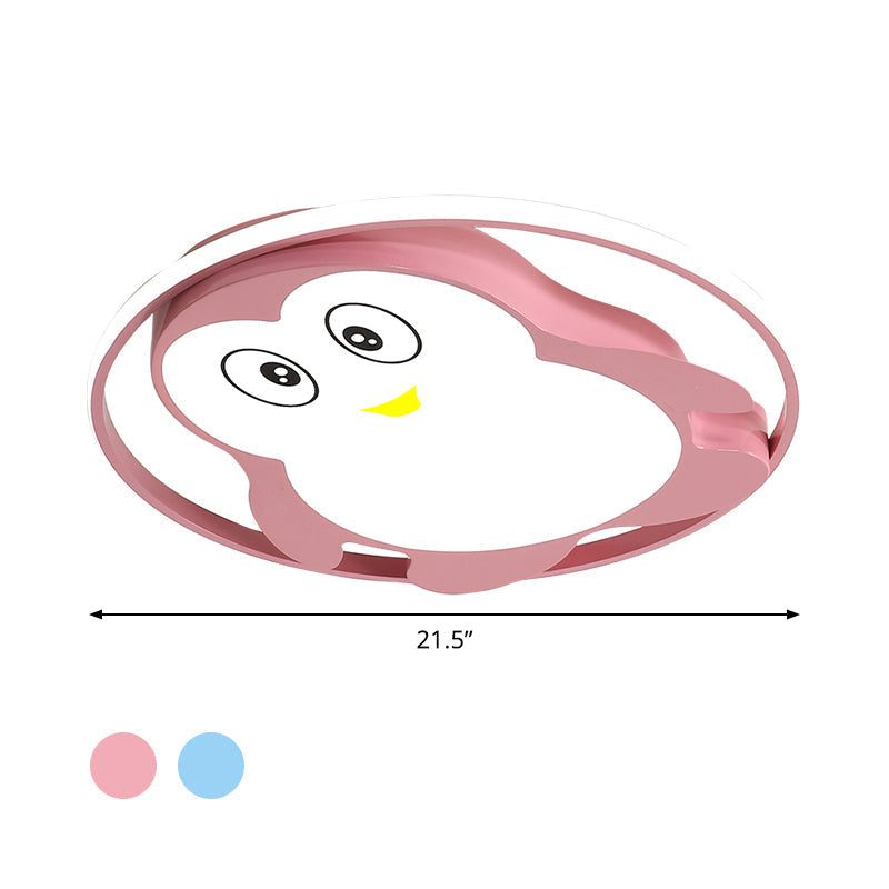 Penguin Led Acrylic Flushmount Ceiling Fixture For Kids Bedroom - Pink/Blue Finish