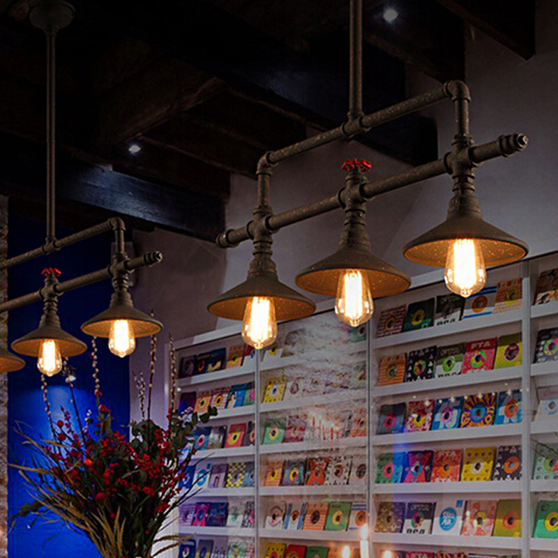 Industrial Style Pendant Lighting - 3/5 Lights Conical Rust Wrought Iron Island Light Fixture For