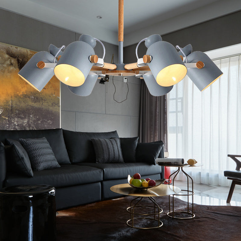 Rotatable 6-Light Macaron Style Pendant Light For Kindergarten Classrooms Grey