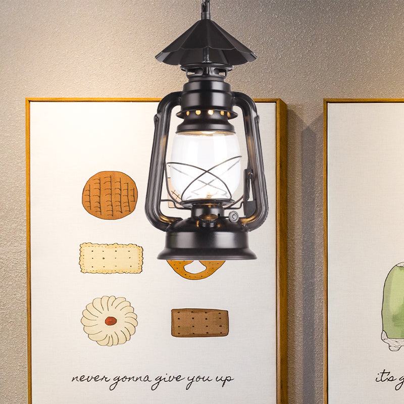 This lamp is perfect for adding an industrial touch to your home. It features a clear glass kerosene-style shade, and comes in three different finishes: black, antique bronze, and weathered copper. The shade is suspended from a metal chain, and the lamp uses a single lightbulb (not included). It is compatible with LED, incandescent, and fluorescent lightbulbs, and can be used with a 220V-240V or 110V-120V power supply.