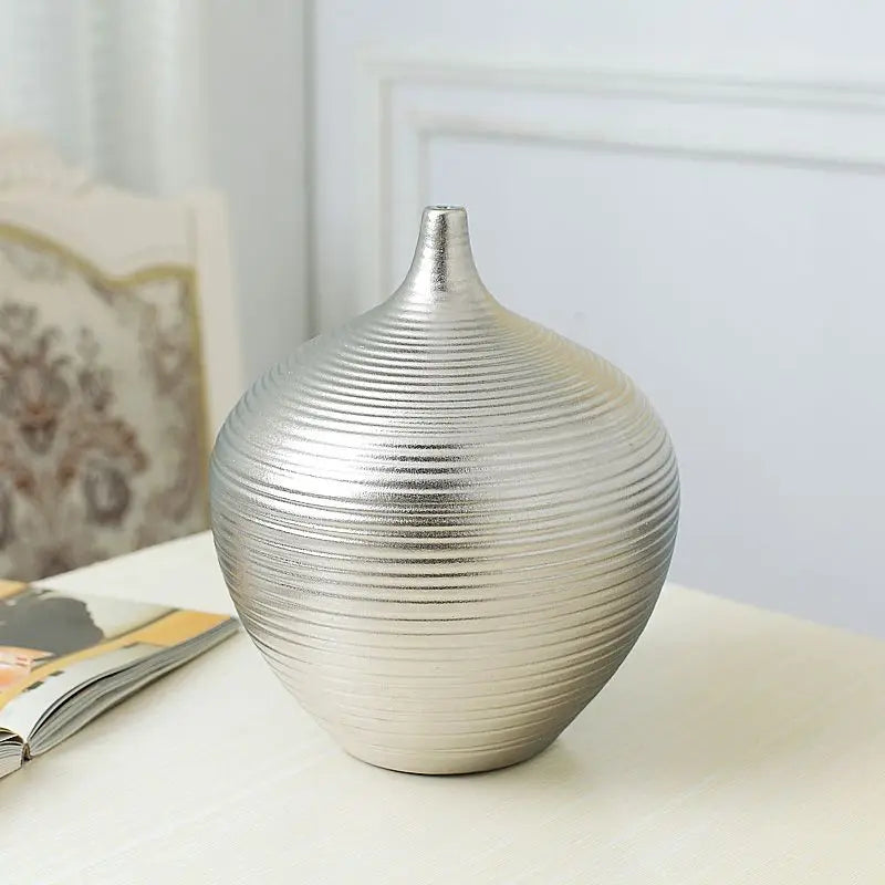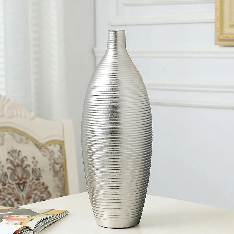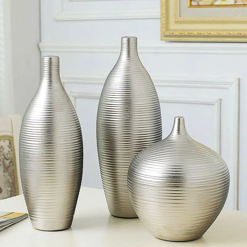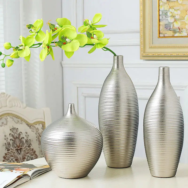 Crafted with care from high-quality ceramic and porcelain materials, these vases boast durability and timeless elegance. The sleek silver finish adds a touch of luxury to your decor, while the modern design complements a variety of interior styles.