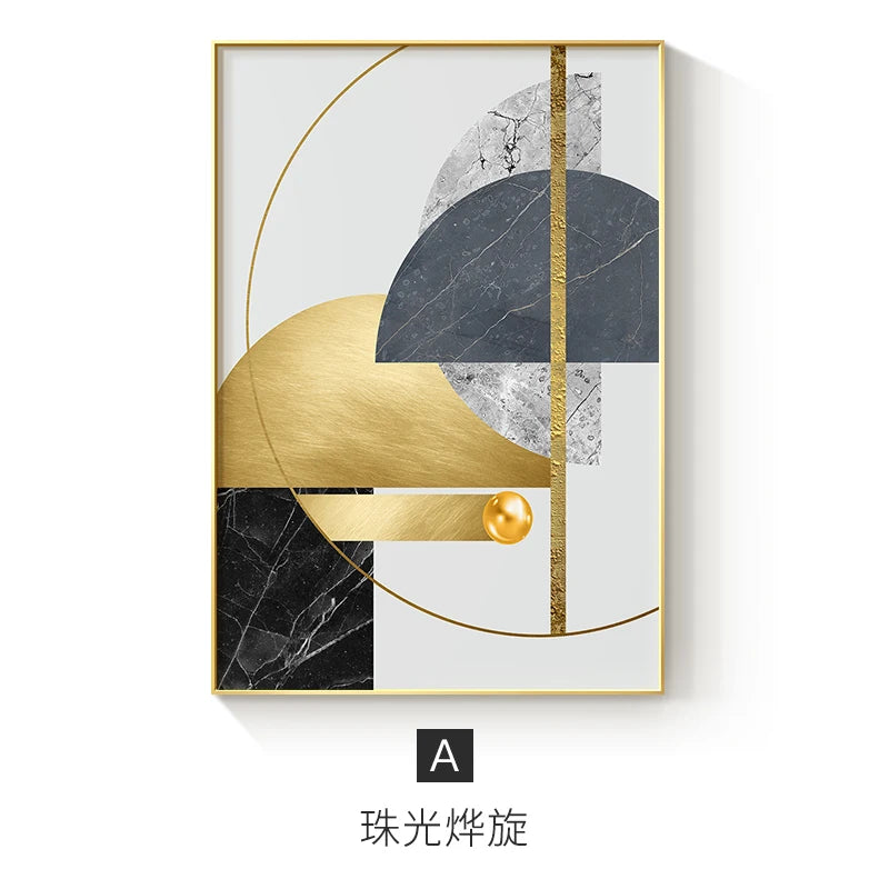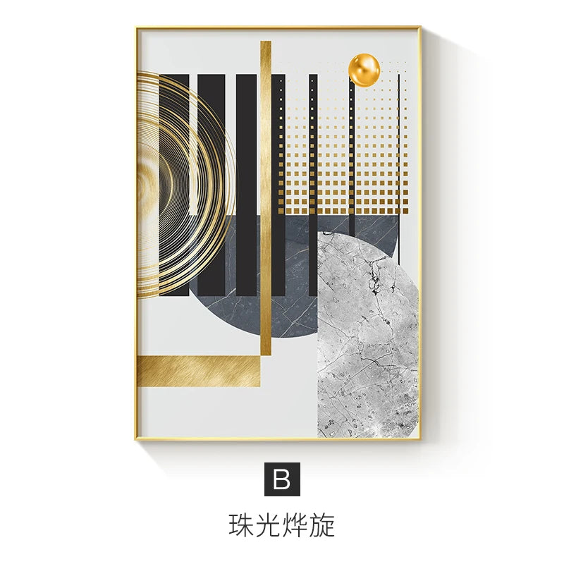 Enhance the ambiance of your living space with our Modern Golden Abstract Geometric Art Canvas Print. This stunning piece combines abstract design with geometric patterns to create a captivating visual effect.