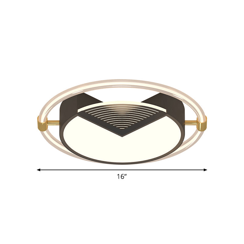 Contemporary LED Flush Ceiling Light, Black Circle Design, Metallic Finish, for Sleeping Room - 16"/19.5" W