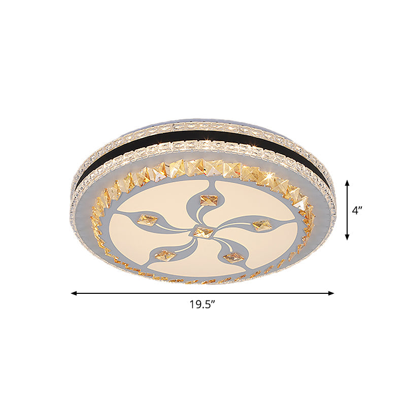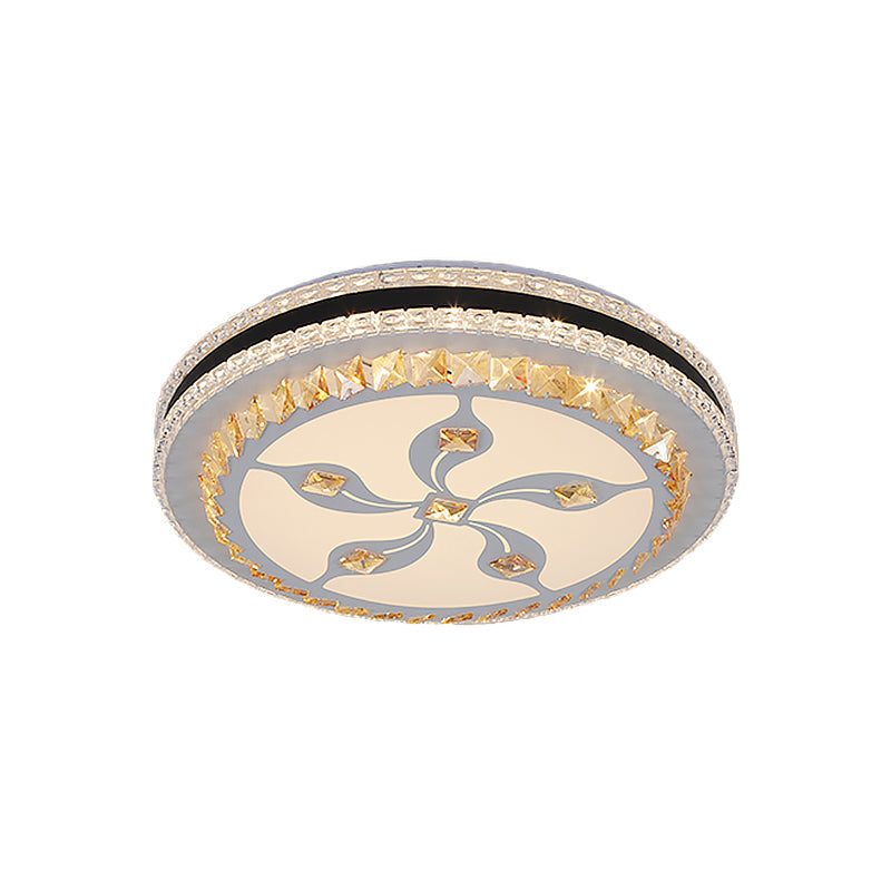 Modern Led Crystal Flush Mount Ceiling Lamp With Faceted Design - Chrome Finish White / A